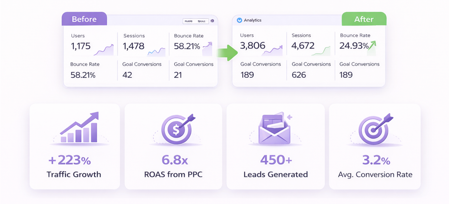 We are driven by results, not just strategies. Our data-backed digital marketing solutions are designed to maximize ROI and accelerate business growth. With a track record of increasing lead generation by 200%, boosting organic traffic by 150%, and improving conversion rates by 35%, we ensure measurable success. From precision-targeted SEO and high-ROI PPC campaigns to conversion-optimized web design, every solution we offer is built to deliver tangible outcomes. Partner with us for performance-driven digital growth that translates into real revenue.